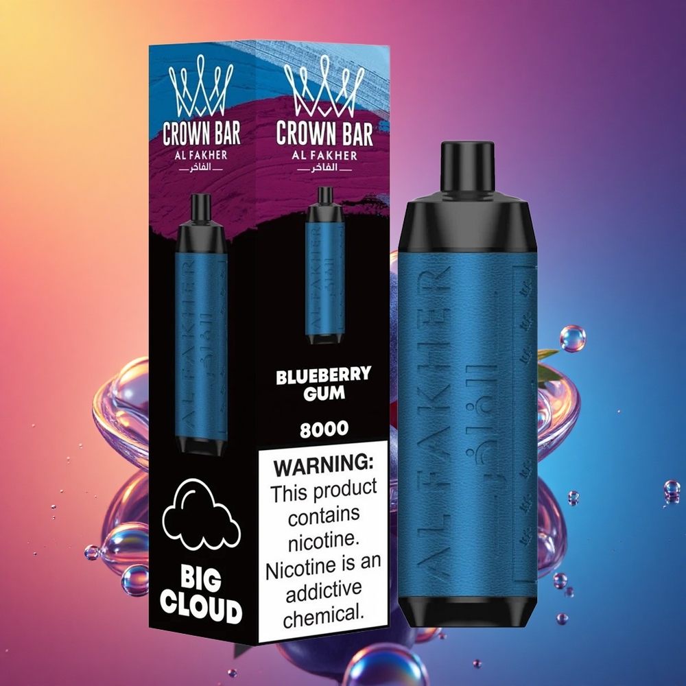 Al Fakher Crown Bar 8000 Crystal ブルーベリーガム 600mAh 5mgニコチン